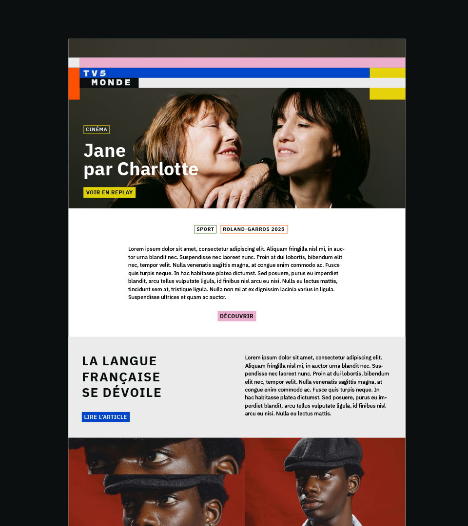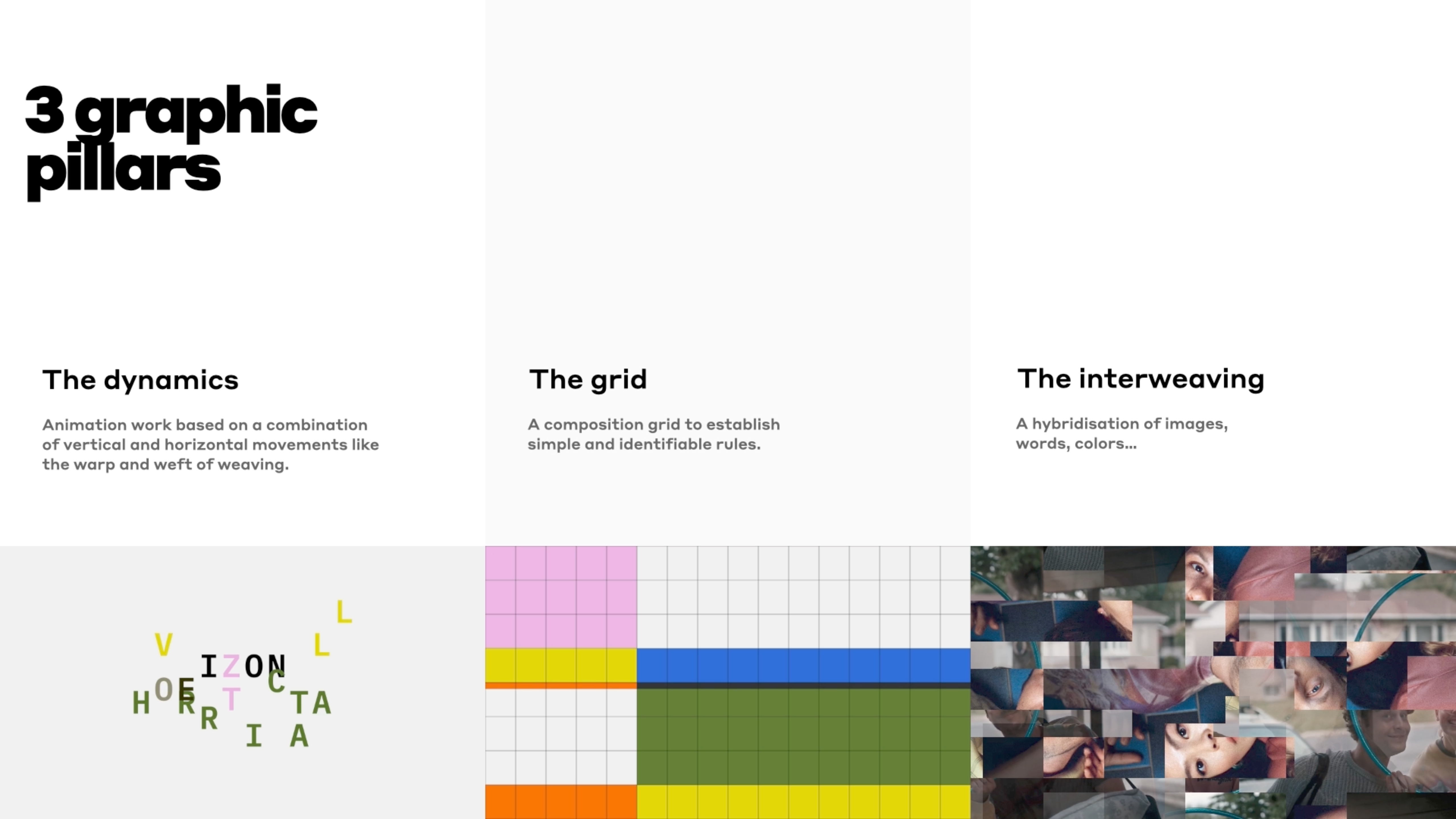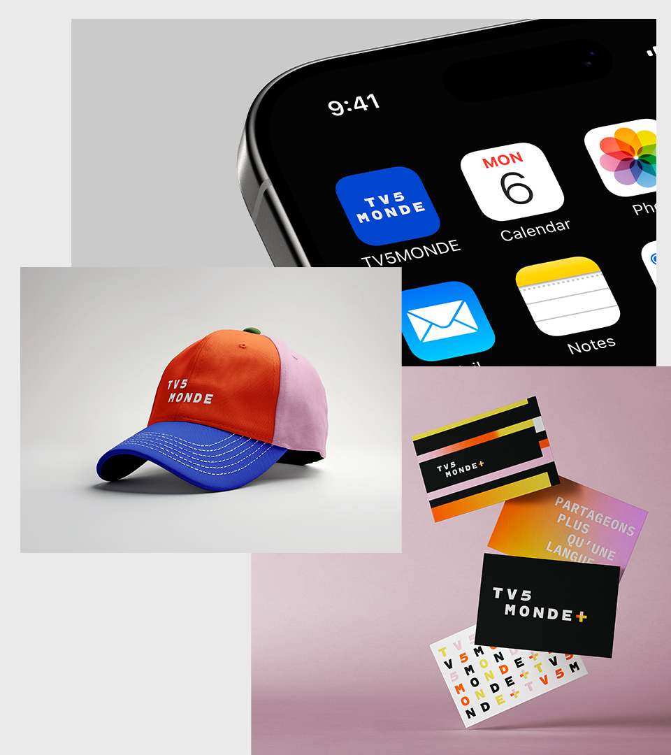 « Re-establishing connections between worlds in a time where everything seems fragmented » That’s why we have created a new design which embodies all of the values underpinning TV5 Monde’s approach: the web of relationships, dialogue between cultures, a rich, diverse and united French-speaking world. It evokes a simple and essential human reconnection. Its rigorous construction, both understated and strong, gives it the ability to last, to evolve and bring people together.